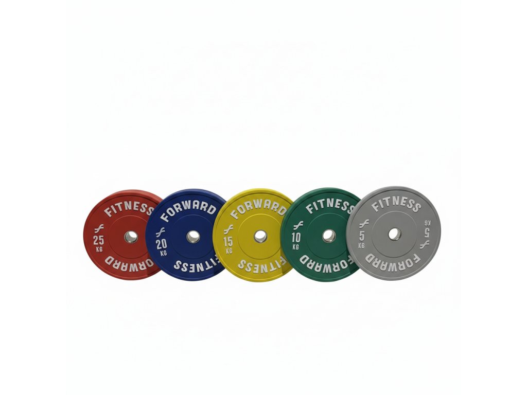Tréningové bumper kotúče farebné s vylepšenou odolnosťou majú vo všetkých hmotnostiach vonkajší priemer 450mm a priemer otvoru 51mm a sú vhodné na všetky druhy olympijských tyčí.