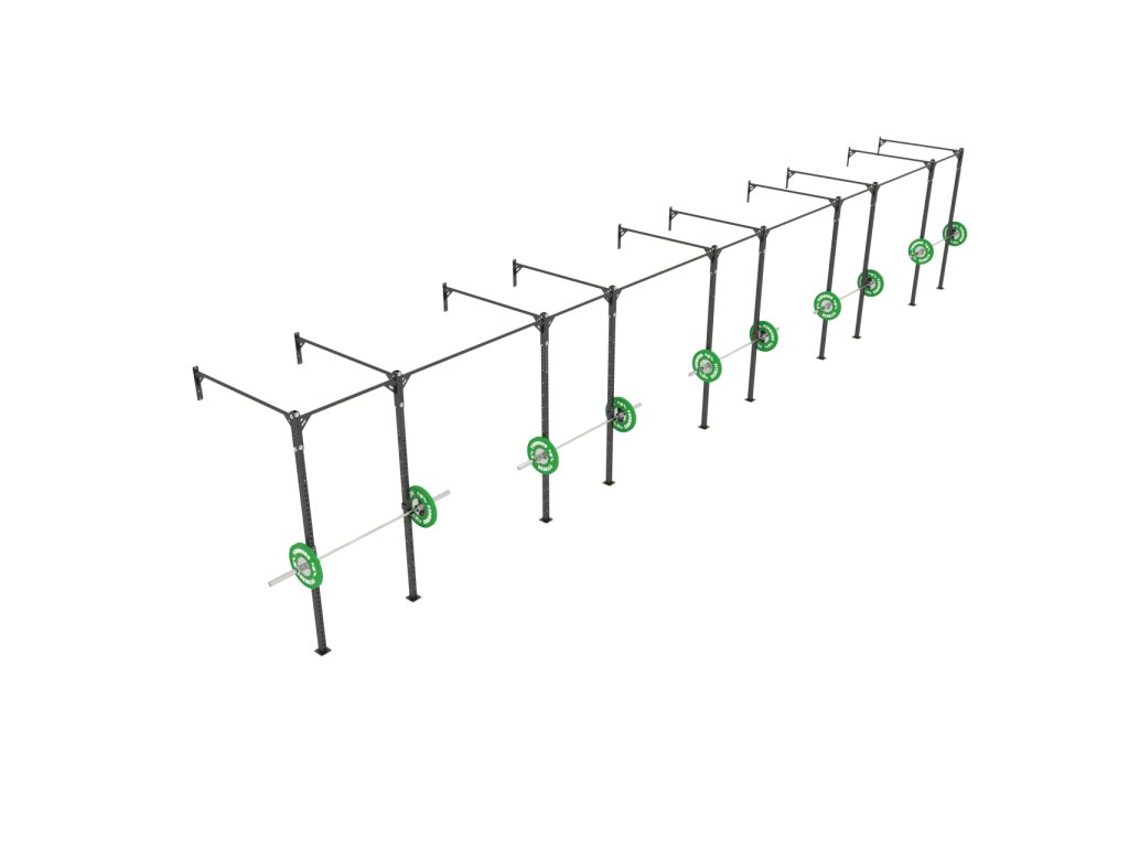 Rig s 13 miestami na hrazdu, s piatimi stojanmi na olympijskú činku