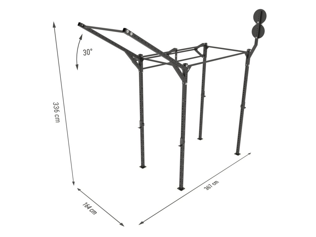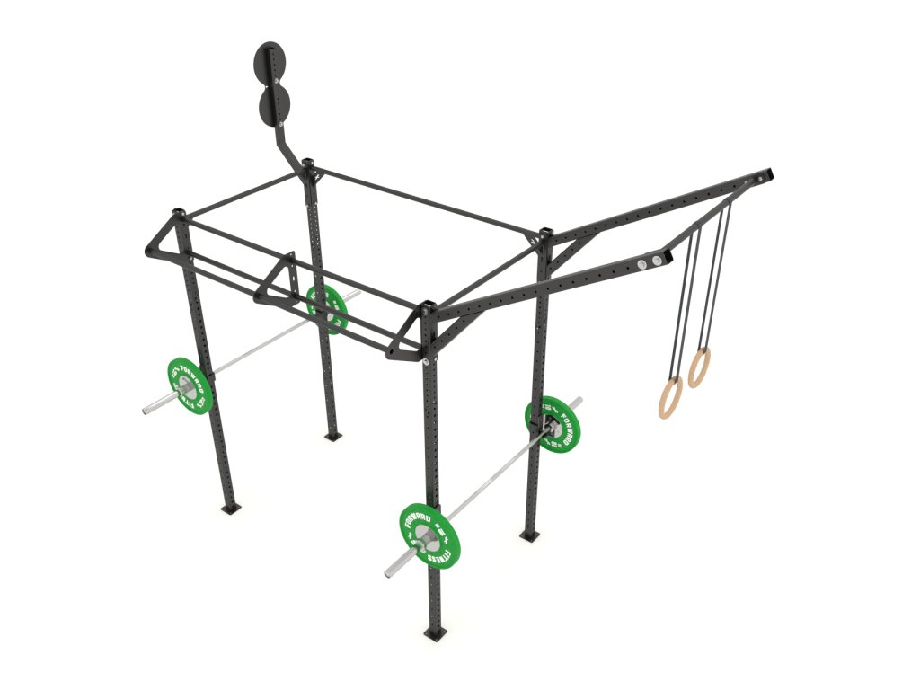 RIG 4-Stĺp Free Stand s vysutou hrazdou je multifunkčná samostojacia konštrukcia, ktorú môžete využiť ako stojan na veľkú činku, robiť na nej zhyby či muscle upy. Vďaka vyvýšenej vysutej hrazde si môžete vylepšiť svoje zručnosti na gymnastických kruhoch či v šplhu po lane. S pomocou širokej škály doplnkov si vytvoríte plnohodnotný tréning pre seba či v kvalitný kruhový tréning pre väčšiu skupinu ľudí. Konštrukciu si môžete kedykoľvek zväčšiť či prestavať inak vďaka vždy kompatibilným a dostupným komponentom.