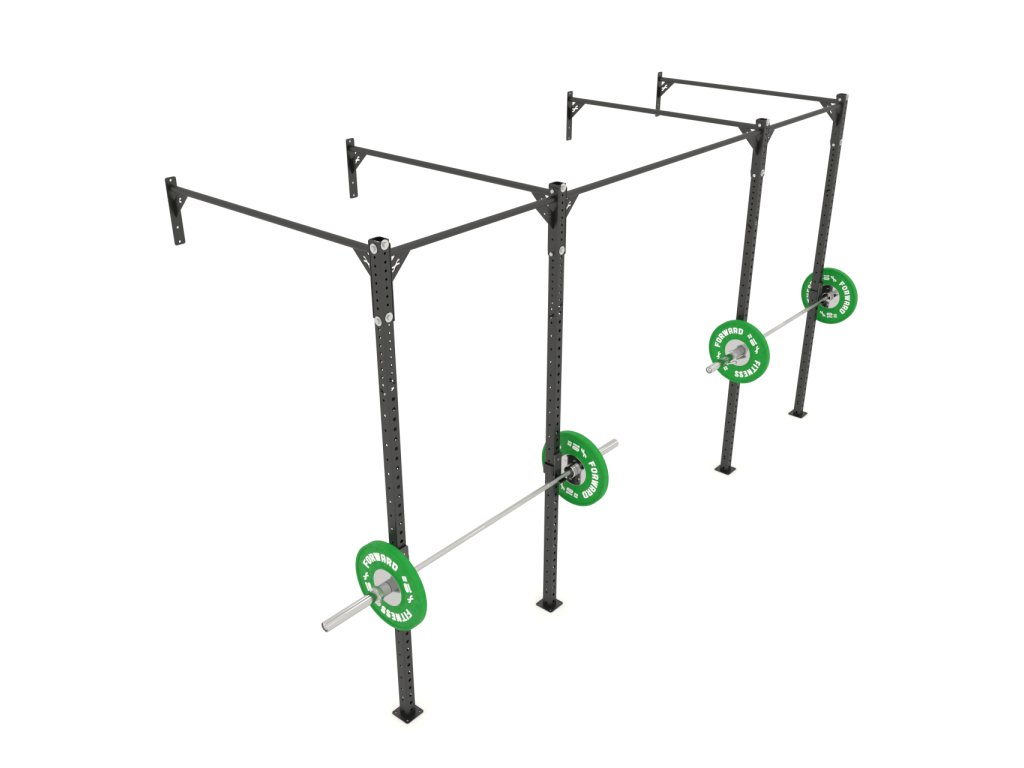 Rig 4 stĺp Wallmount s dvoma stojanmi na olympijskú činku. J-háčiky a ostatné komponenty, sa dajú,nastaviť do 30 polôh.