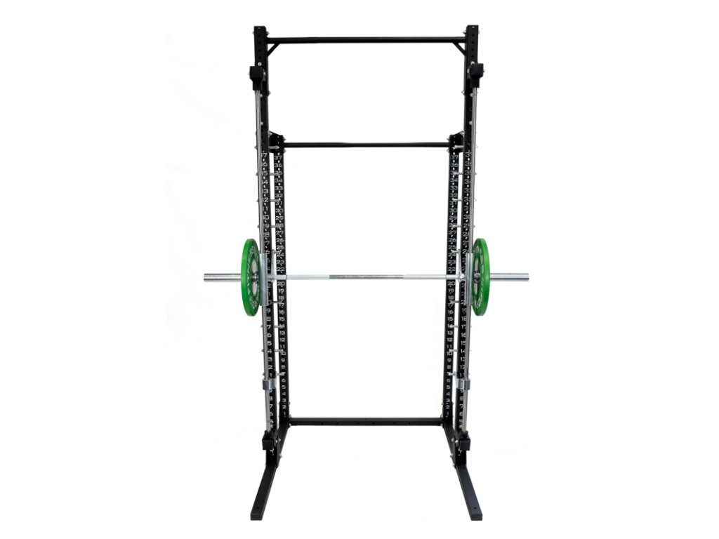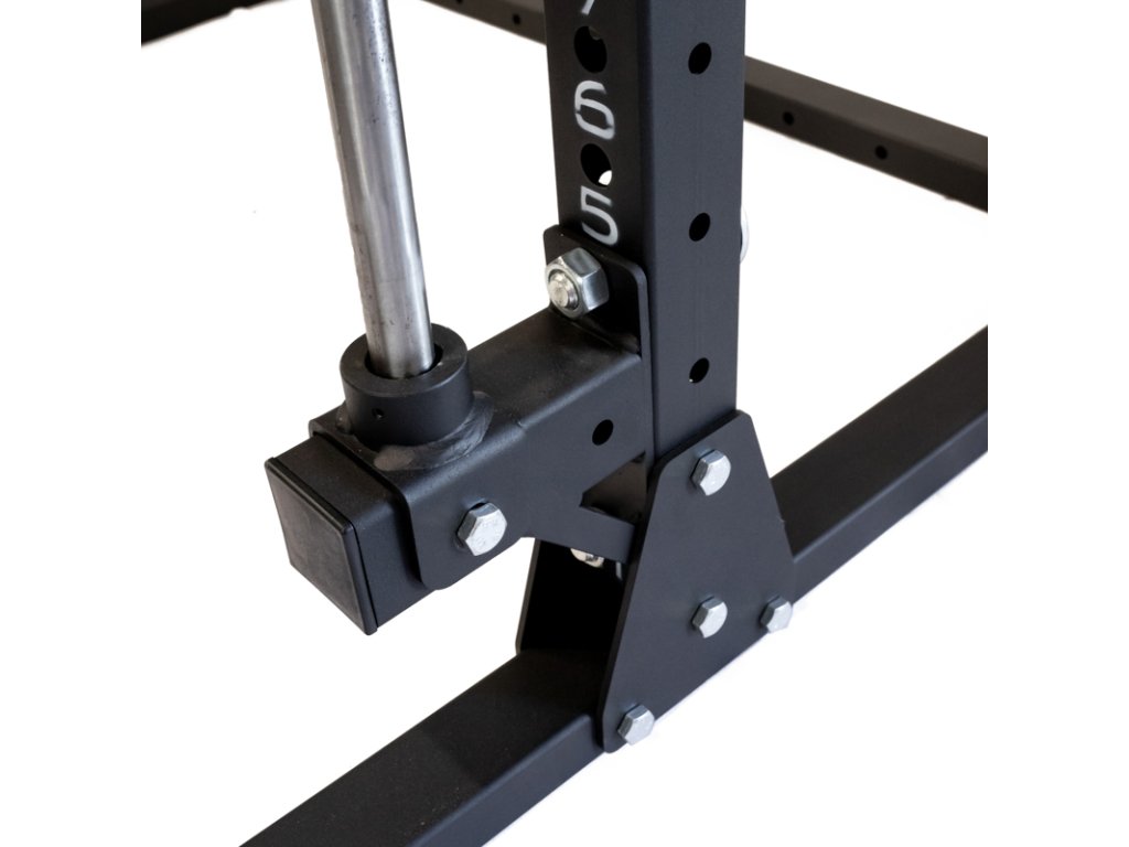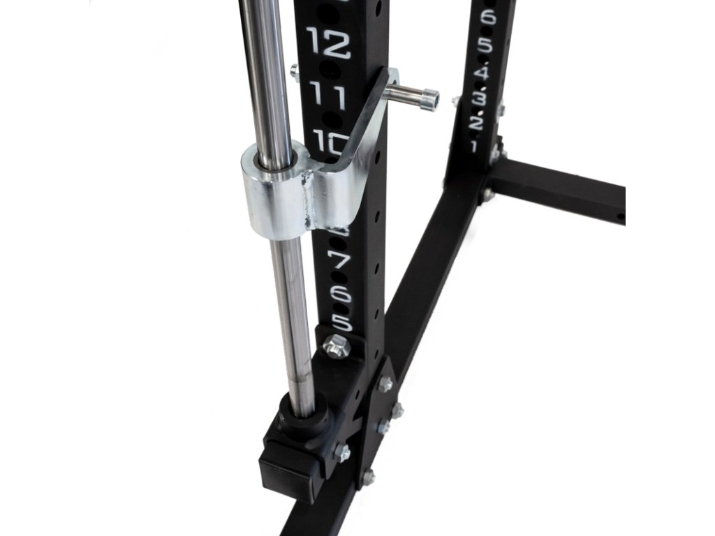Integrované bezpečnostné dorazy a viac výškových polôh hákov umožňujú nastaviť ideálny rozsah pohybu pre každú postavu aj cvik. Vďaka premyslenému usporiadaniu šetríte miesto: na pár metroch štvorcových odcvičíte nohy, chrbát, hrudník aj core (stred tela). Vežu možno doplniť o hornú/spodnú kladku, multiúchopovú hrazdu, odkladacie tŕne na kotúče a polohovateľnú lavicu, takže si zostavíte presne také stanovište, aké potrebujete.