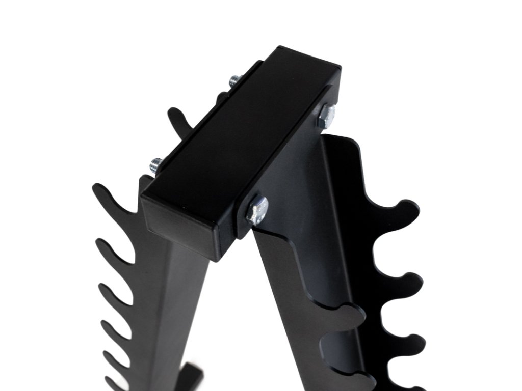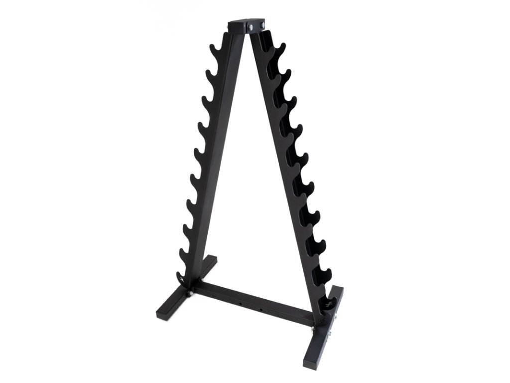 Stojan na jednoručky je elegantným doplnkom do domáceho, či komerčného fitness centra. Využite svoj cenný priestor naplno a majte svoje jednoručky precízne uložené v pyramídovom stojane vyrobenom z kvalitného materiálu zabezpečujúceho vysokú stabilitu celého výrobku. Stojan je určený na jednoručky vo váhovom rozmedzí 1-10kg.